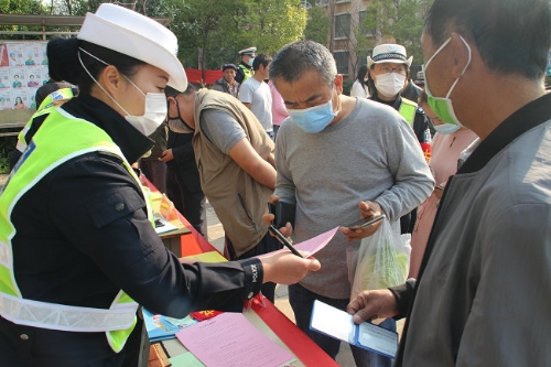 在社区广场上设置交通违法处理、交通法律法规、车驾管业务、“交管12123”手机APP注册、事故处理及昆明交警星级服务微信公众号业务办理等业务办理咨询台,对前来咨询的群众,及时提供帮助和答疑解惑,及时告知群众“网上办、自助办”等便民利民举措,一对一进行业务办理和便民指导服务。当日上午,共接待社区群众咨询 200余人次,指导群众通过“交管12123”APP、昆明交警星级服务微信公众号线上办理电子驾证93人次,指导群众通过线上办理违法处理业务10人次,接受交通法律法规咨询30人次,接受车驾管业务咨询43人次,接受事故处理业务咨询5人次。