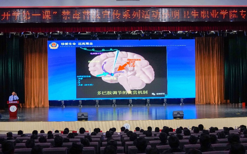 “开学第一课”在禁毒普法暖场短片《黑神话:悟空》中拉开帷幕。跨时空对话中,林则徐虎门销烟的历史壮举与当代民警执勤身影隔空呼应,百年禁毒精神在画面交替中传递,尽显使命传承的厚重底蕴。禁毒普法讲座中,戒毒人员现身说法视频,以及民警结合真实案例向同学们展示毒品的演变史,特别是对“上头电子烟”和吸食“笑气”的危害等进行的详细讲解,带大家深入了解毒品对个人和家庭带来的巨大伤害。歌曲《带你远航》《我的美丽》分别展现了民警竭尽全力帮助吸毒人员彻底戒断毒瘾,用真情助他们回归社会的历程。最后,“开学第一课”在现场铿锵有力的集体禁毒宣誓中结束。同步开展的宣讲活动则以“现场演绎+视频播放+禁毒展板+模型展示”等形式,给学生们送上了一份特别的“开学礼”。